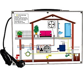 This demonstrative panel is intended to demonstrate the use Multifunction testers and specific instruments like Continuity, Insulation, Earth, Loop and RCD testers of Kyoritsu. The panel simulates an electrical installation with TT and TN distribution systems, easy selectable by a switch on the panel. The tests that can be carried out are: