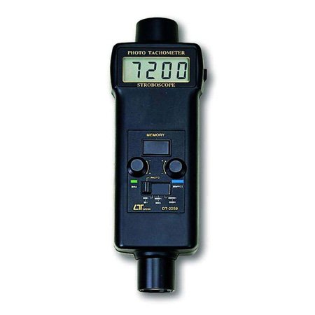 * Digital Photo Tachometer : No contact RPM measurement, wide measuring range from 0.5 to 100,000 RPM. 0.1 RPM resolution for the measured value < 1000 RPM. The last value, max., value, min. value can be stored into the memory automatically & be obtained by pressing " Memory Call Button ". High visible LCD display gives RPM reading exactly with no guessing or errors.