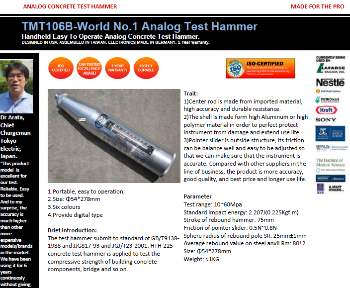 TMT106B-World No.1 Analog Concrete Test Hammer